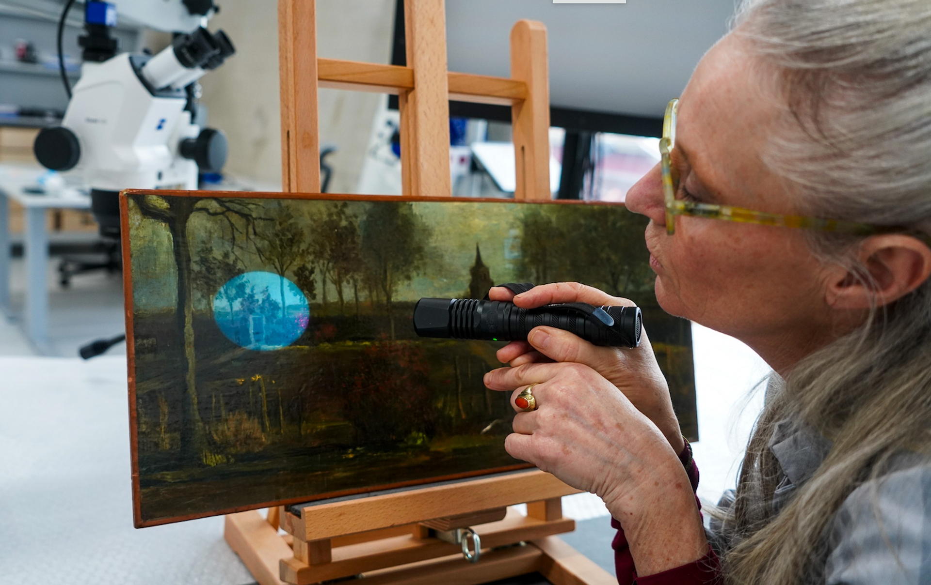 Conservator Marjane de Wissel also discovered that the woman’s face in the center of the work had been radically altered by the addition of her features after the artist’s death. Van Gogh showed her (as he sometimes did) a blank, featureless face.