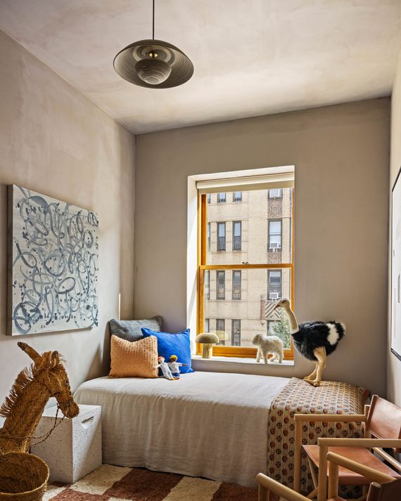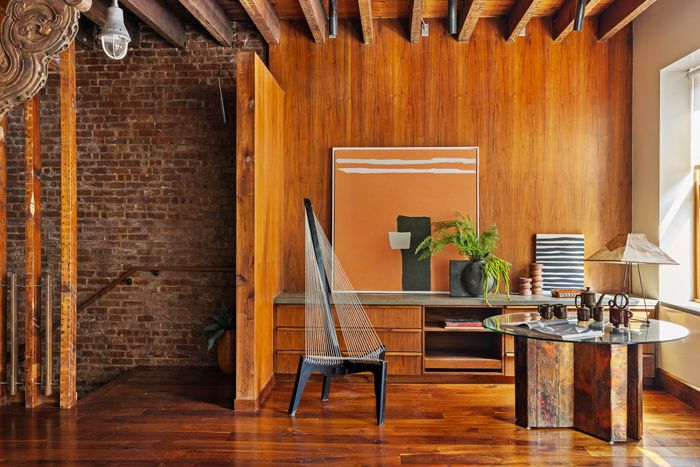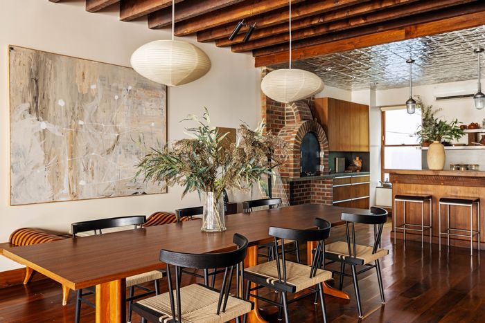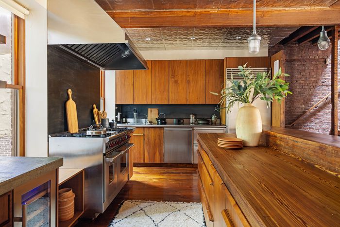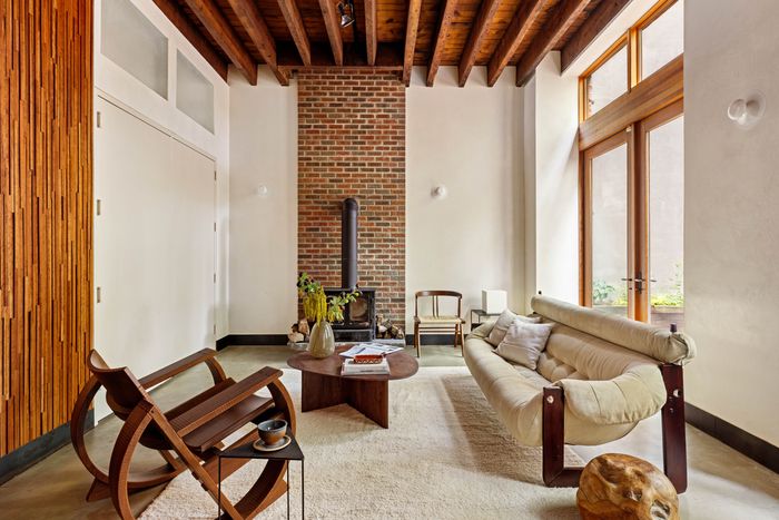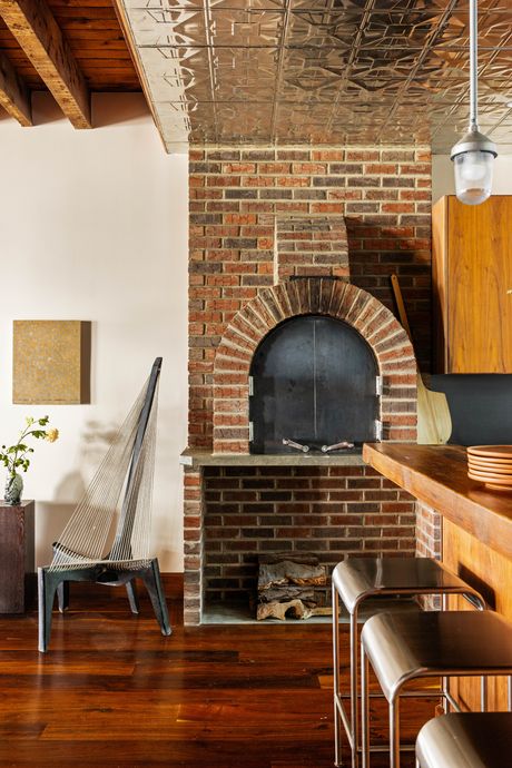 Eventually, two young boys arrived to fill the additional bedrooms on the top floor, and the SHED office in the back doubled as a dreamy guest suite with a bathroom inspired by Japanese hot springs. It has a deep cypress bathtub, a steam room, and a glass wall shaded from the neighbors by salvaged Douglas fir slats and a canopy of birch trees the couple planted when they moved in. “We wanted to bring the forest there,” Niemegius Farber said. Faber, a serious home cook with a Rolodex of chef friends, installed a full-fledged chef’s kitchen with a pizza oven and a table that seats 15 people. The storage area in the basement became a wine cellar, where we could also dry the ducks. And, taking exception to our salvage obsession, we installed an entirely new ceiling in the kitchen: a tin ceiling. It’s practical for cooking, but can be a little romantic, Faber said. “It was a homage to all the apartments we lived in over the years. We left it bare and unpainted.”