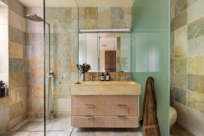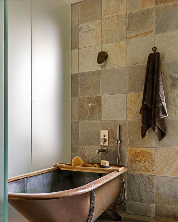 The first bath had a 1920s copper bathtub that we bought off Craigslist. The shower drains invisibly around the tile grout. From the top: Photo: Hayley Ellen Day/CorcoranPhoto: Hayley Ellen Day/Corcoran