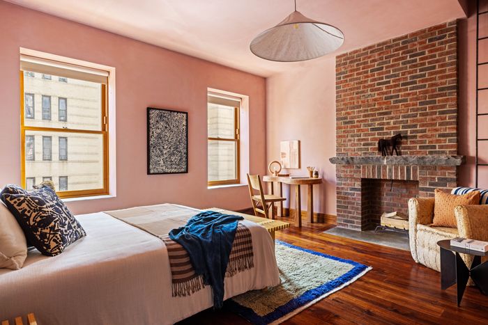 A pink lime wash in the larger of the two bedrooms where the children grew up.