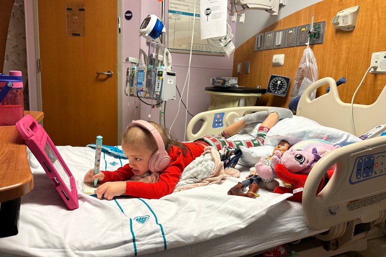 Surgeons inserted a temporary tube into a vein near her heart and attached a feeding tube to her abdomen. As the treatment intensified, her hair fell out and thin layers of skin peeled off, forcing her new family to wear surgical gowns and gloves when they wanted to be close.
